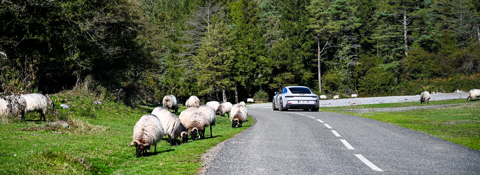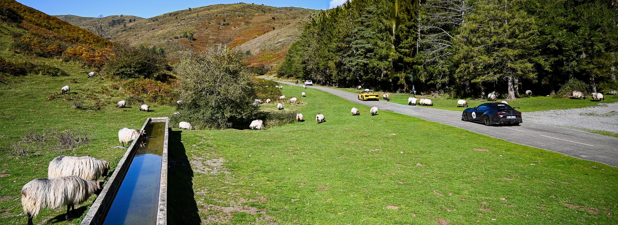 Après cette mise en jambes sportive, les voitures se sont élancées vers les premières pentes du Pays Basque, par une sélection de routes confidentielles serpentant entre crêtes et vallées. Ce fut une véritable immersion dans une région de caractère, où chaque virage a ouvert sur un nouveau panorama.